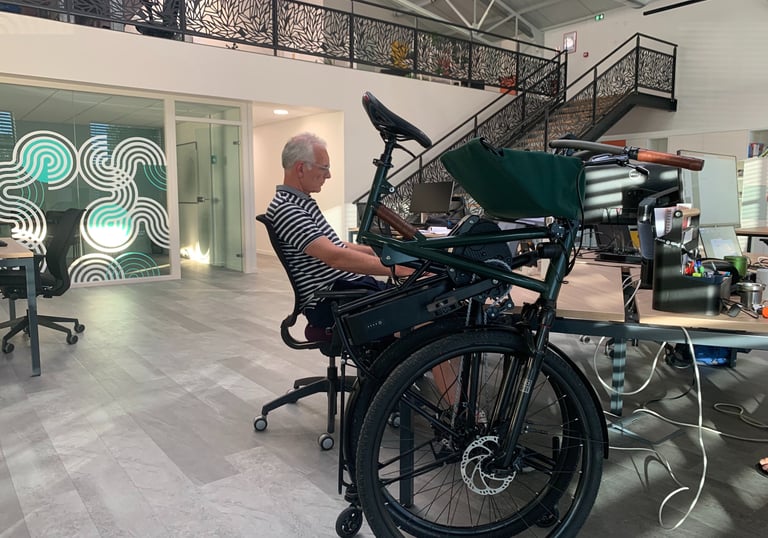 En sécurité aux heures de pointe grâce à ses grandes roues (29"), sa suspension et ses freins hydrauliques. Son pliage facile en 8 sec le fera se faufiler facilement dans un ascenseur, pour ainsi rester rangé au bureau et à l’abri du vol, tout en pouvant se recharger.